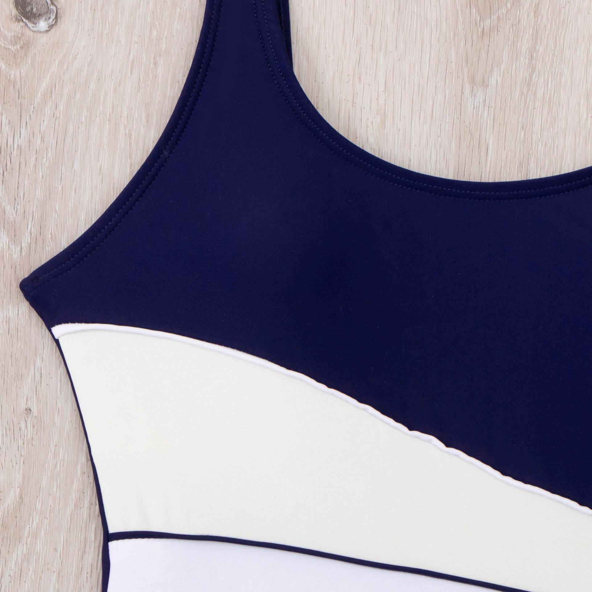 Sunshine, sandy beaches, blue waves… The romantic picture of summer is unfolding. And you deserve a suit that perfectly complements your confidence – the new women’s colour-blocked one-piece swimming costume.