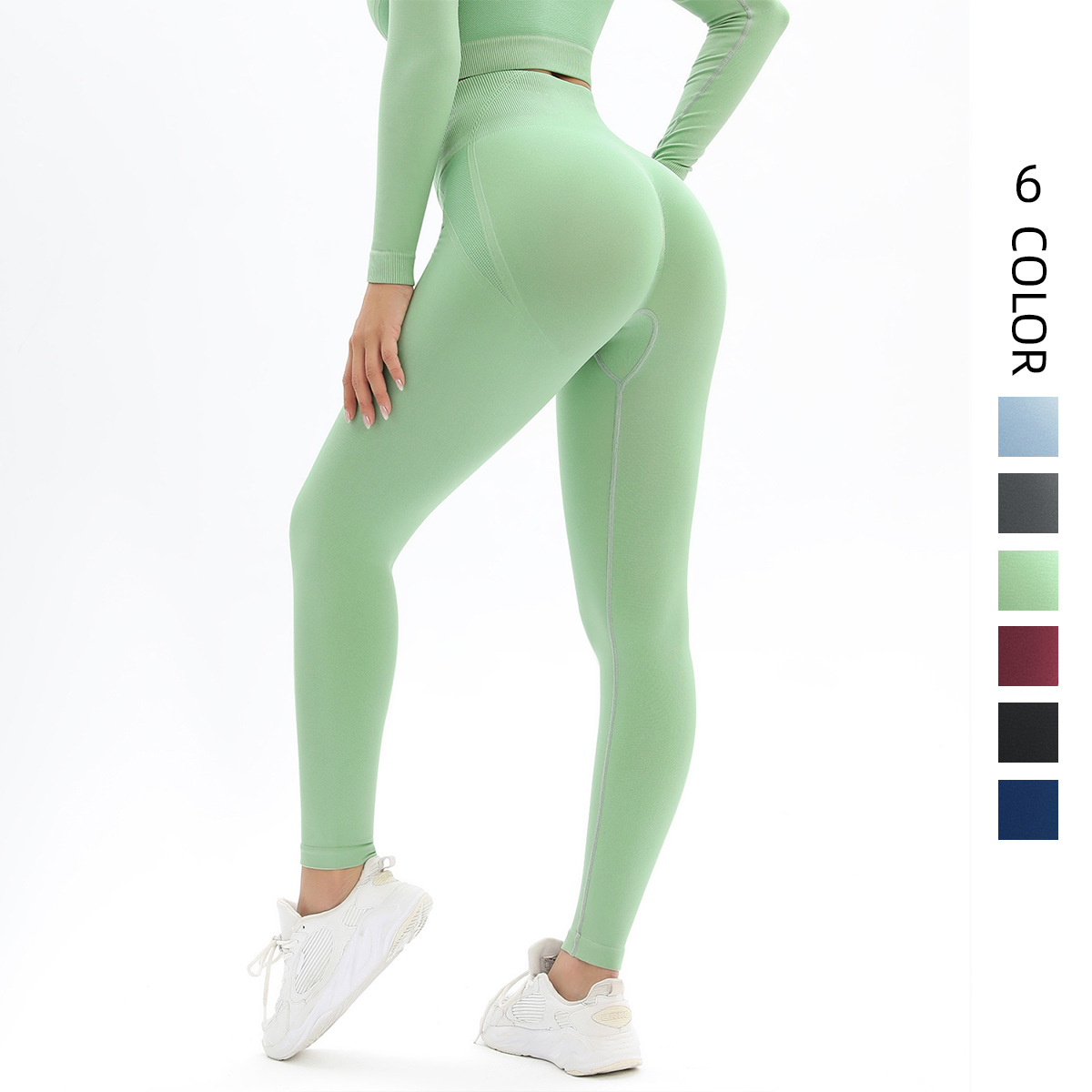 Seamless Skinny Solid Color Jacquard High Waist High Stretch Skinny Sports Running Fitness Yoga Pants