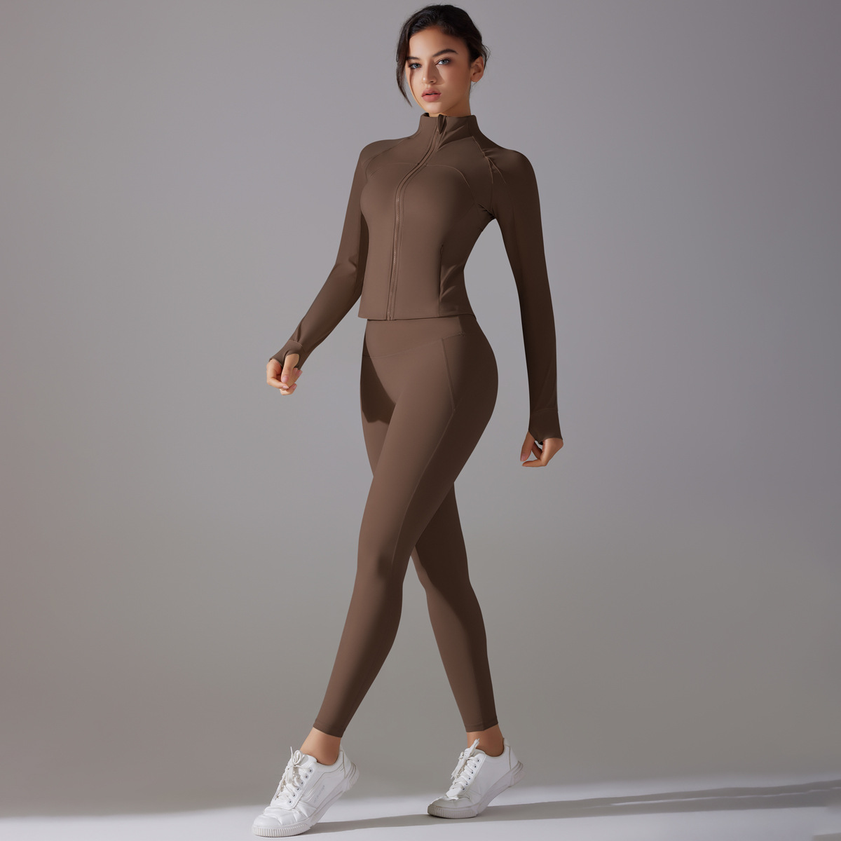 Solid Color Antimicrobial Zipper Jacket Exercise Running Fitness Yoga Set