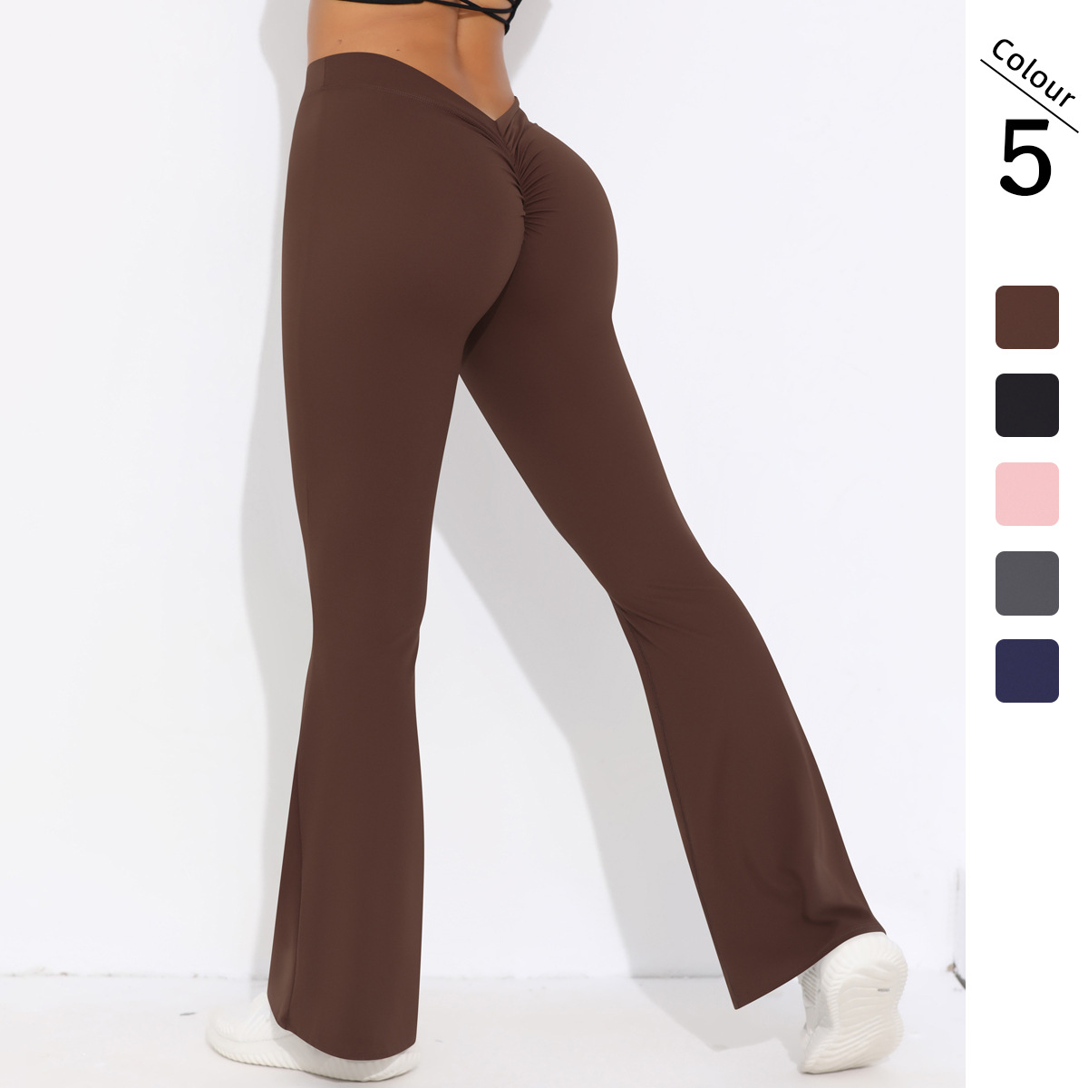 Solid Color Brushed V Waist High Waist Lift Hip Loose Casual Wide Leg Running Fitness Yoga Pants