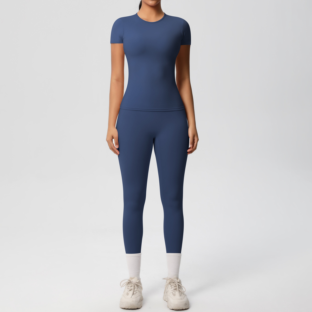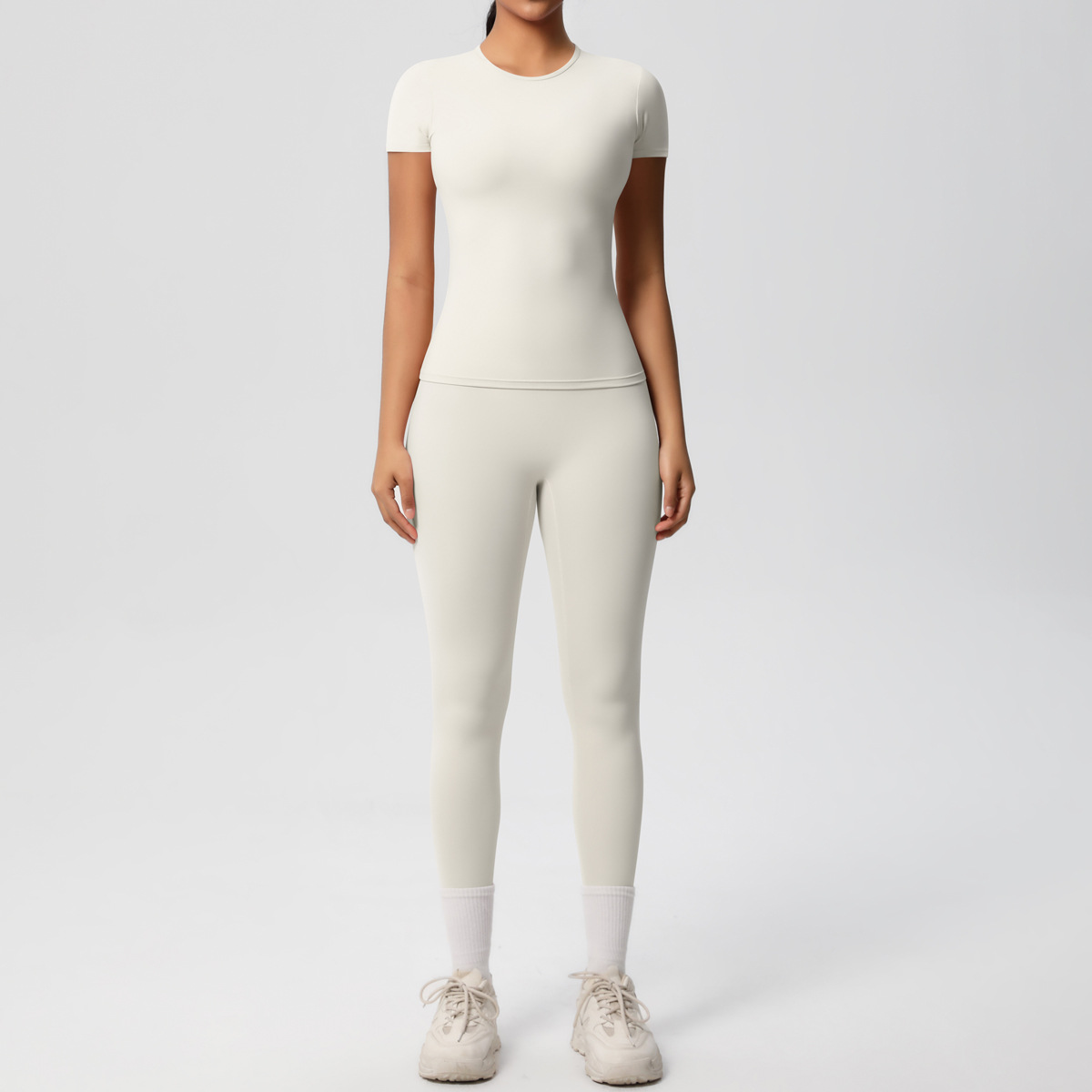 Solid Color Reversible Brushed Breathable Skinny Fitness Two Piece Running Exercise Yoga Set