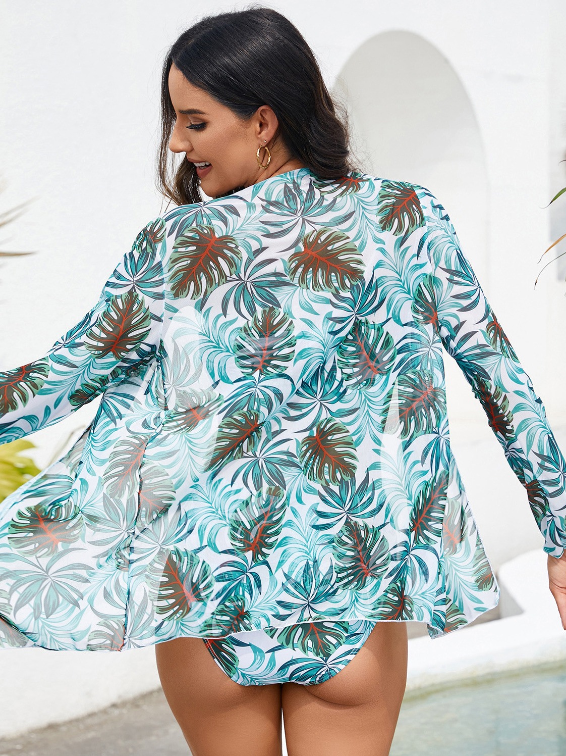 Split Swimsuit Bikini Three Piece Mesh Printed Plunge Swimsuit