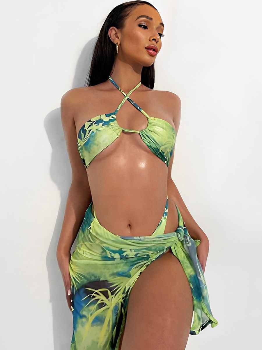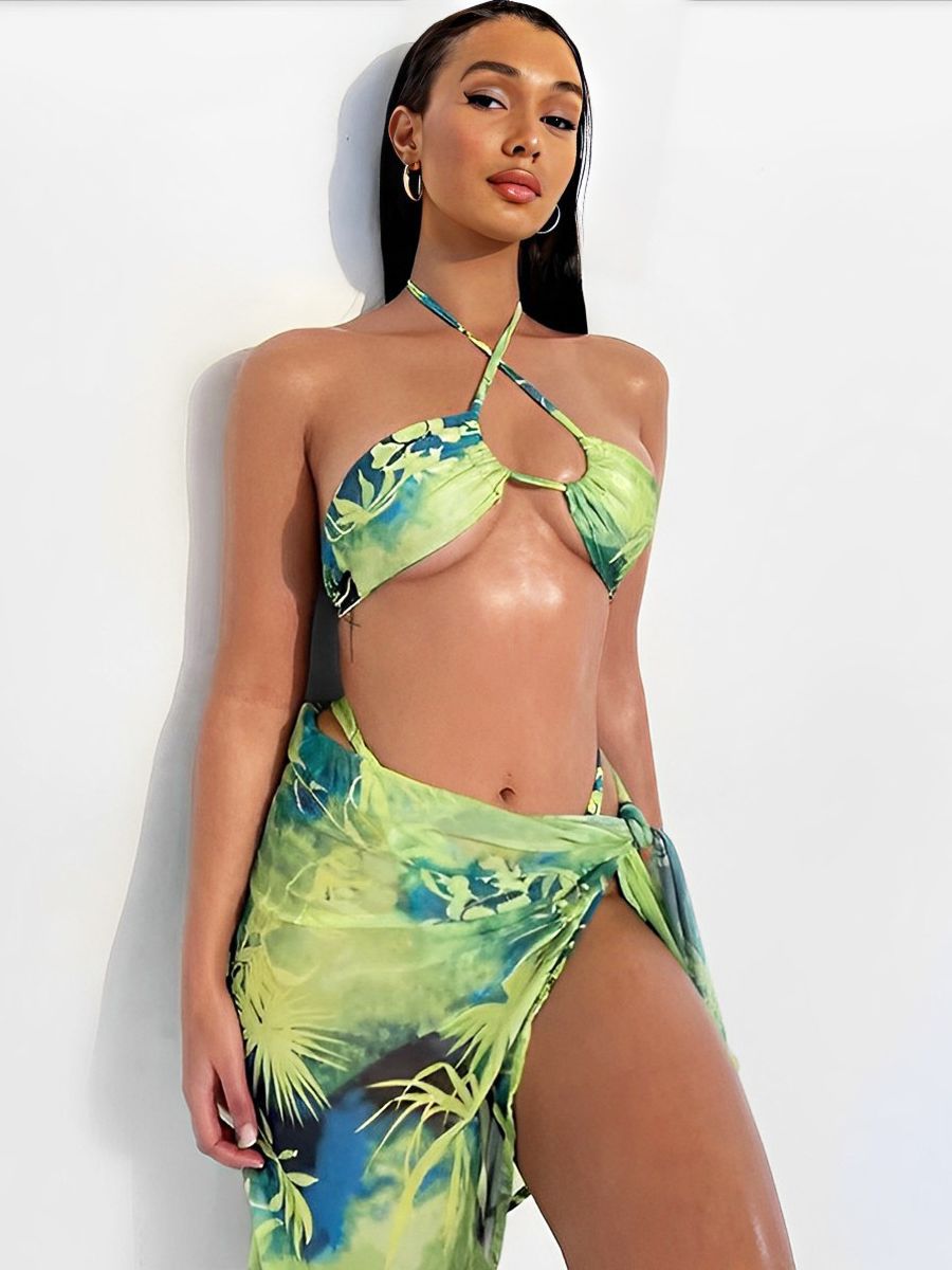 这不是泳衣——而是 可穿戴艺术: ▫️ 从文艺复兴时期的壁画中窃取的花卉图案 ▫️ 像西风之神呼吸般飘动的透明裙子 ▫️ 可调节领带 像金箔一样包裹着锁骨